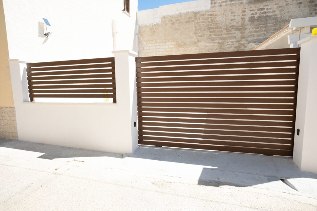 Elementi indispensabili per delimitare e valorizzare spazi esterni, realizzati in ferro zincato, acciaio inox o alluminio. Realizziamo cancelli scorrevoli o a battente, ringhiere per balconi e recinzioni su misura, adatti sia a contesti residenziali che industriali. Progettiamo ogni struttura in base alle esigenze del cliente, garantendo resistenza agli agenti atmosferici, design personalizzato e finiture di qualità.